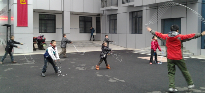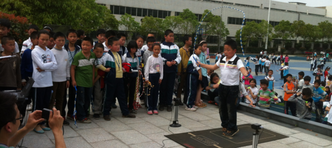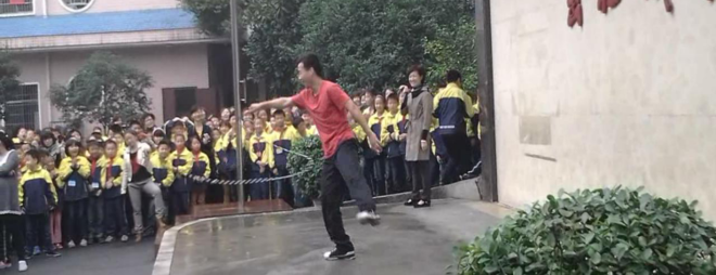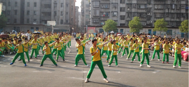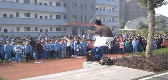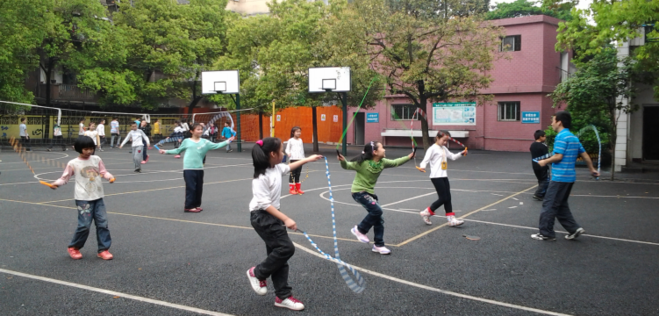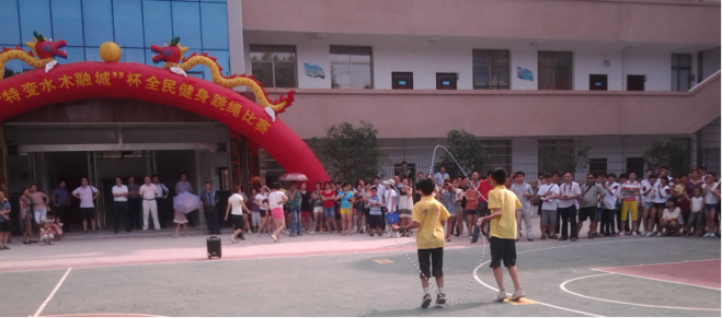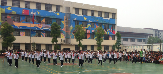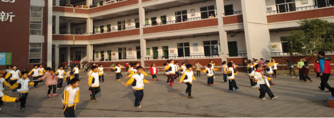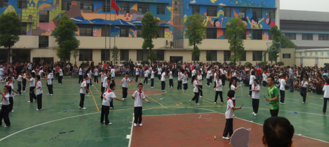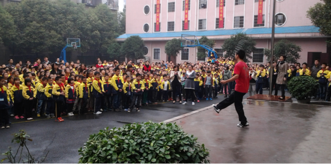 8、大力實驗小學,在大力試驗小學老校區進行了表演,隨后學校搬進了新校區,開展了豐富多彩跳繩運動。