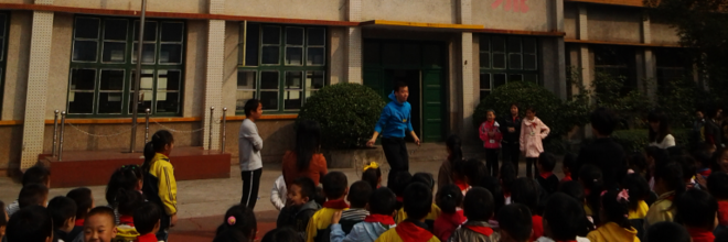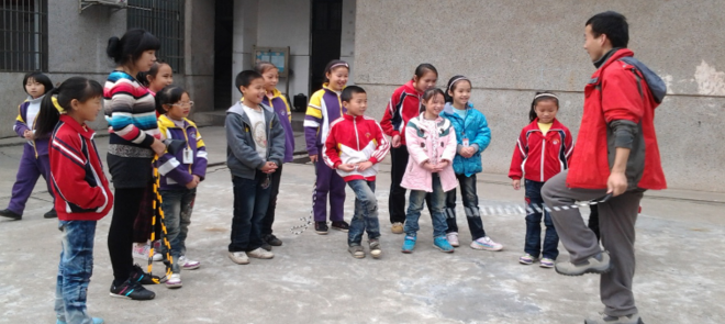 7、417隊小學,老師同學一起看表演,幫助417小學編排六一兒童節編排跳繩表演。