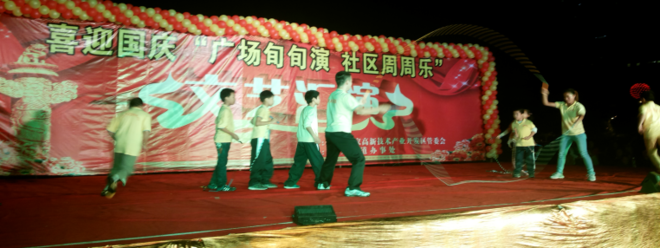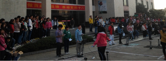 6、洪湖小學。學校場地太小,只能在走廊上表演。